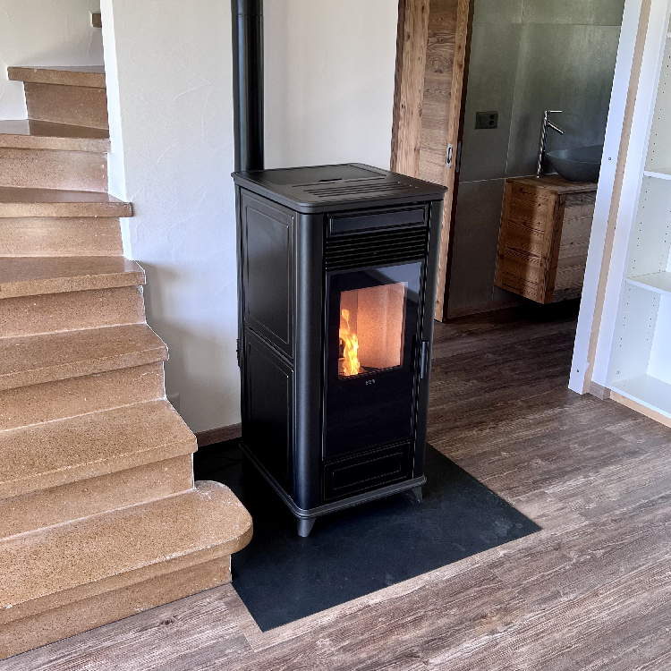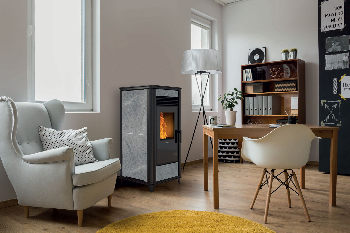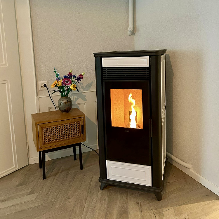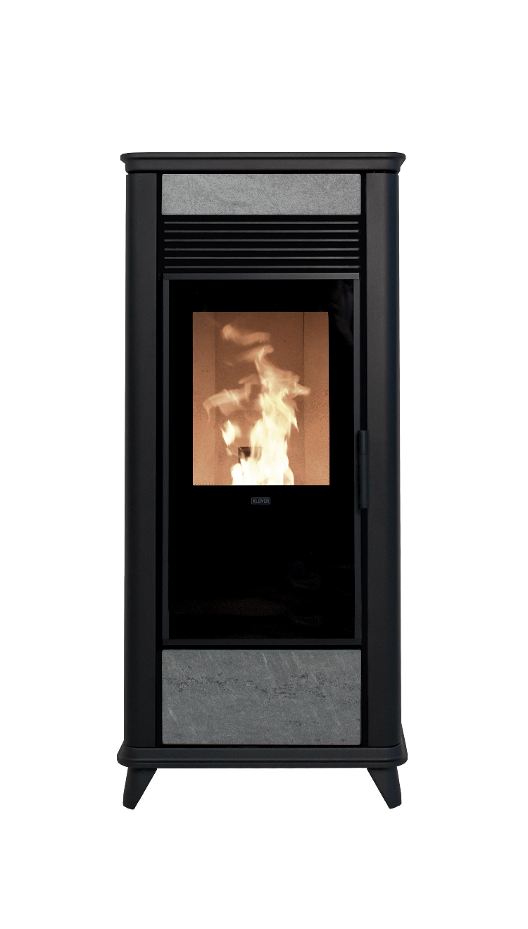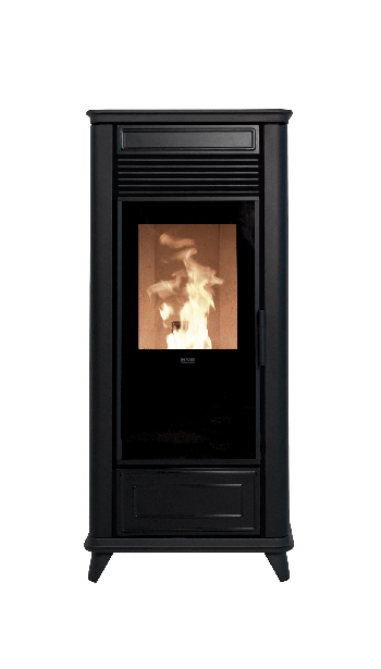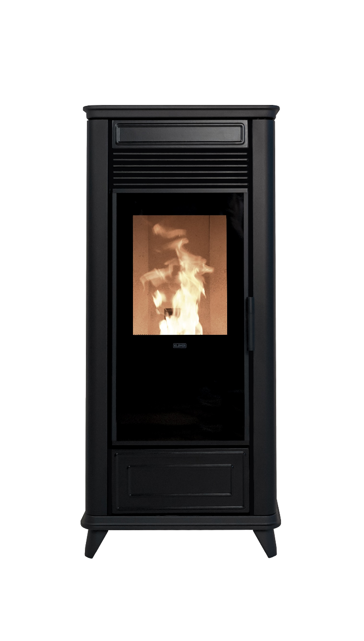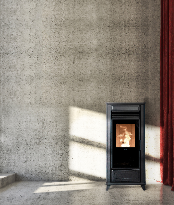 Mit seinem Retro-Look ist der Pelletofen Class Air 90 ein echtes Möbelstück für sich. Auch wenn er nicht massiv im wörtlichen Sinne des Wortes ist, wird dieser Ofen den Platz eines Busses einnehmen. Er ist vollständig mit Keramik verkleidet (burgunderrot, schwarz, elfenbeinfarben oder Speckstein) und lässt durch ein gut platziertes zentrales Fenster viel Platz für die Flamme.