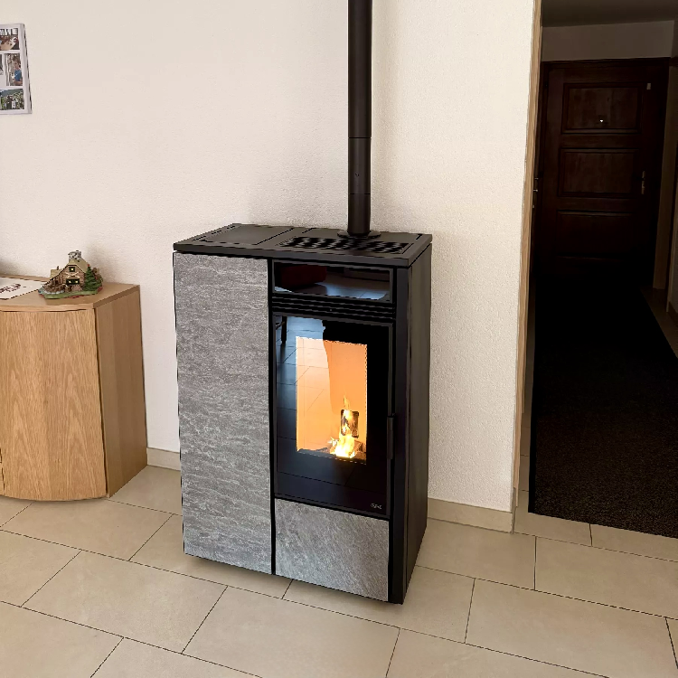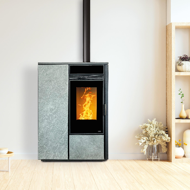 Der Klover Vertical ist in fünf verschiedenen Ausführungen erhältlich - Speckstein, schwarzer Sandstein, schwarzer Stahl, Bronze und Elfenbein - und fügt sich nahtlos in jeden Einrichtungsstil ein. Ob Sie nun einen modernen Look mit schwarzem Stahl oder eine warme Atmosphäre mit Bronze oder Elfenbein wünschen, dieser Kaminofen wird Ihren ästhetischen Vorlieben gerecht und bietet gleichzeitig eine hervorragende Leistung. Der Pelletofen Klover Vertical ist nicht nur ein Heizgerät: Er ist ein echtes funktionales Kunstwerk, das Ihren Wohnraum bereichert und gleichzeitig eine optimale Energieeffizienz gewährleistet. Erhältlich ab September 2024!