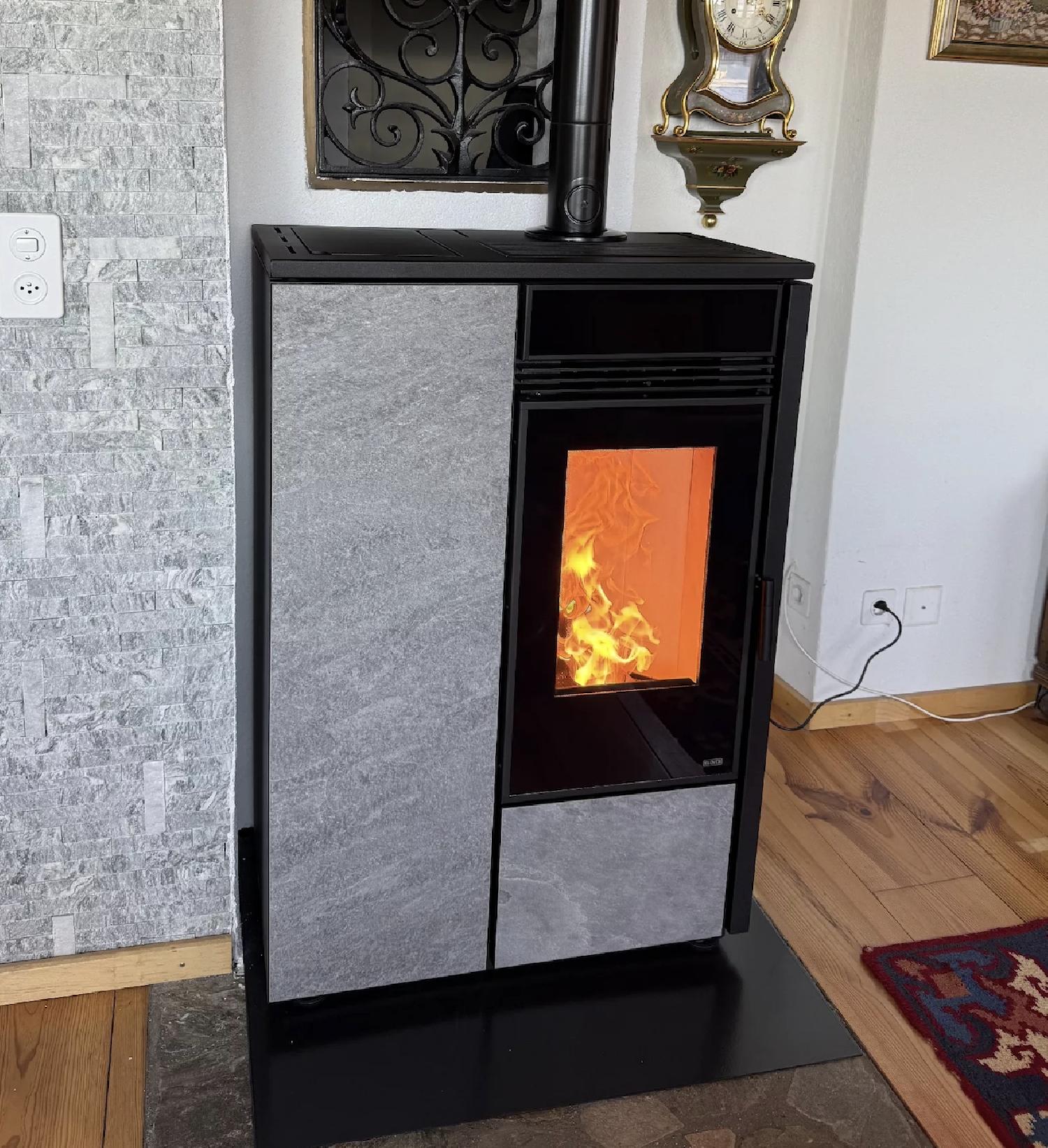 Mit einem automatischen Füllsystem und einer selbstreinigenden Feuerstelle ausgestattet, zeichnet sich der Klover Vertical durch seine Benutzerfreundlichkeit aus. Mit der App Klover Home können Sie Ihren Kaminofen aus der Ferne steuern und so die Sicherheit Ihrer Anlage erhöhen. Seine Lagerkapazität von 45 kg Pellets garantiert eine lange Brenndauer, sodass Sie ohne häufige Unterbrechungen eine konstante Wärme genießen können.
