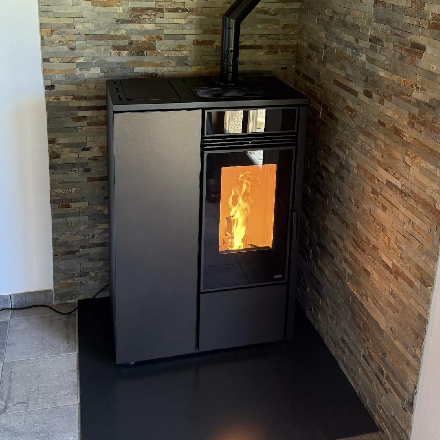 Der Pelletofen Klover Vertical verschmilzt harmonisch die traditionelle Feuerkunst mit modernster Technologie, um den modernen Heizbedürfnissen gerecht zu werden. Mit seinem klaren, vertikalen Design verleiht er jeder Einrichtung einen Hauch von Eleganz und bietet gleichzeitig eine hervorragende Heizleistung und eine einfache Bedienung.