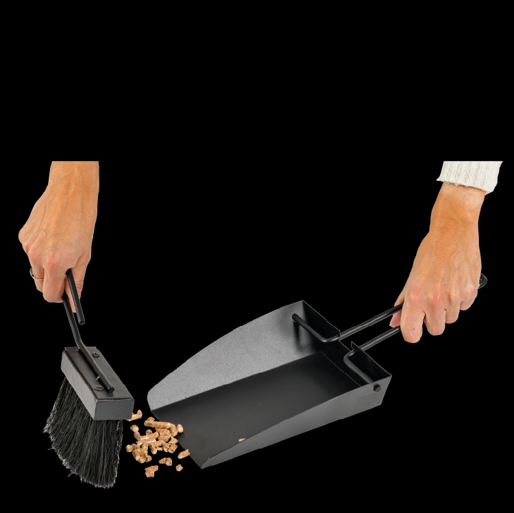 Cleo is a wide shovel for collecting ash and pellets. Its ergonomic handle makes it easy to grip.