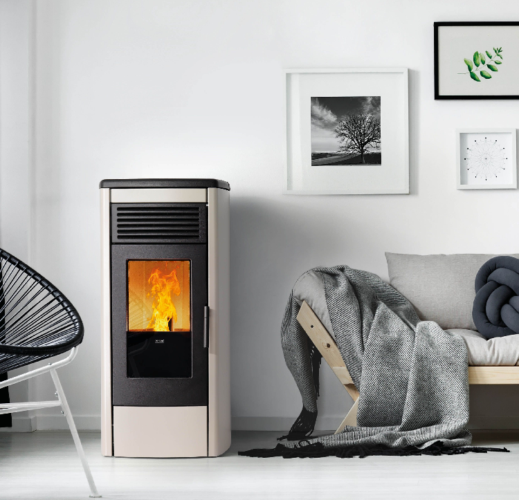 Because it's not always easy to find a pellet stove that's the right size to heat your living space, the Italian company Klover has created the AURA 80. AURA 80 is a pellet stove that is as compact as it is efficient. With a choice of four colours and a very small footprint, this heating appliance will guarantee you a soft, diffused heat at your convenience, but also the pleasure of the flame.