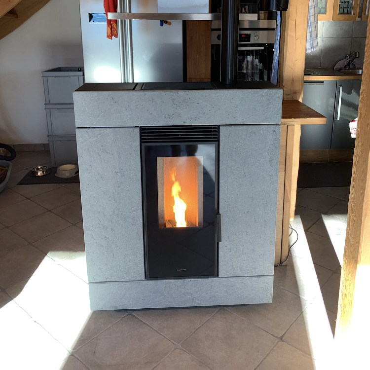 The Diva Duo pellet stove from the Italian company Klover is a little marvel with a sober and pure contemporary design. Its discretion is matched only by its remarkable thermal performance. It will be discreet and will adapt to any environment. With its very shallow depth, only 27 centimetres, the Diva Duo pellet stove will not interfere with the layout of your rooms. The outlet pipe can be visible or not depending on the configuration of your living room. Equipped with all the latest technology, it is also possible to channel a hot air outlet on the Diva Duo Multi Air version. Thanks to its glass surface, the Diva Duo pellet stove allows you to enjoy the pleasure of the flame. The stove can be controlled remotely and is equipped with the GAS self-cleaning system for unequalled comfort of use.