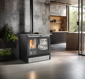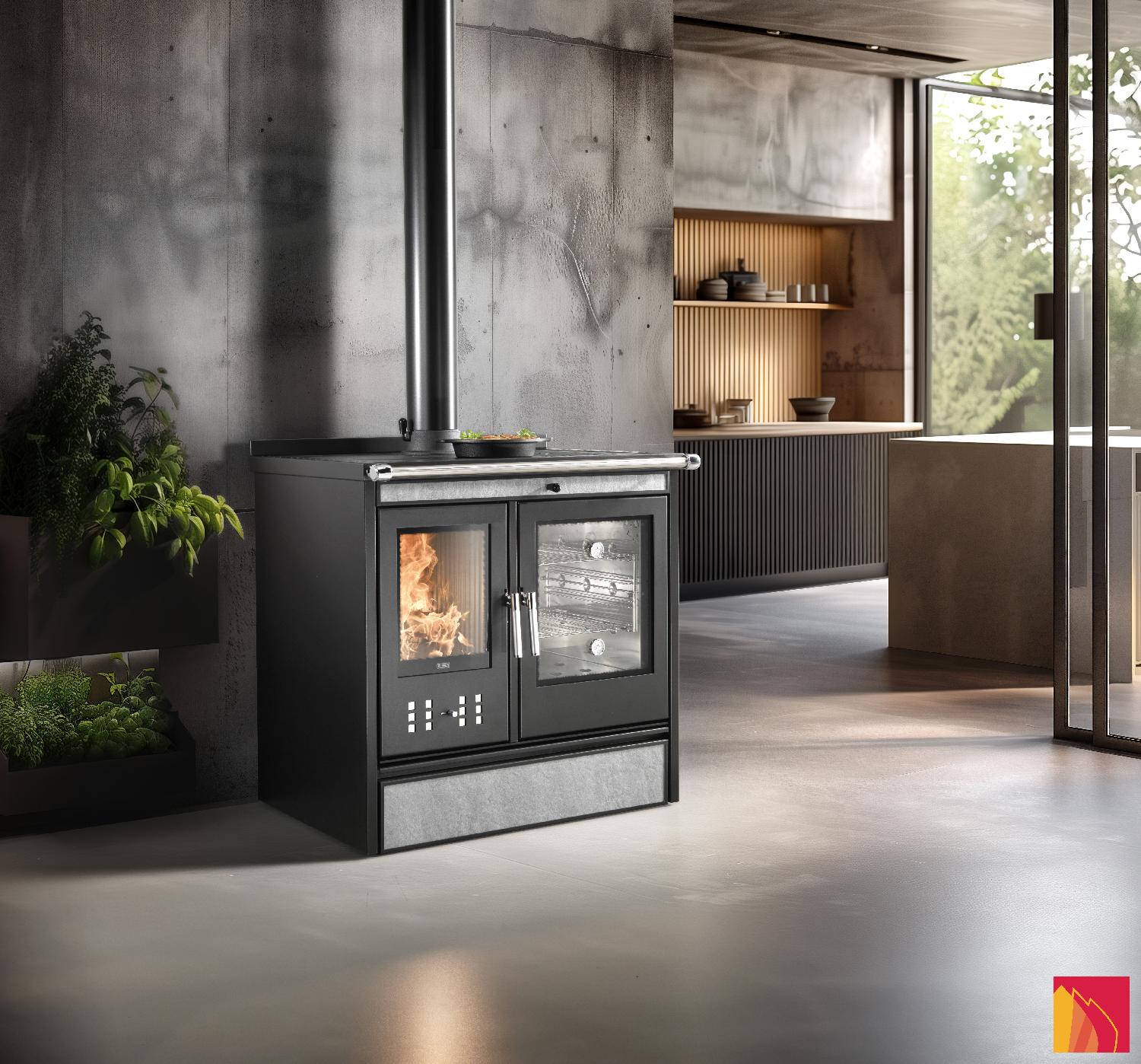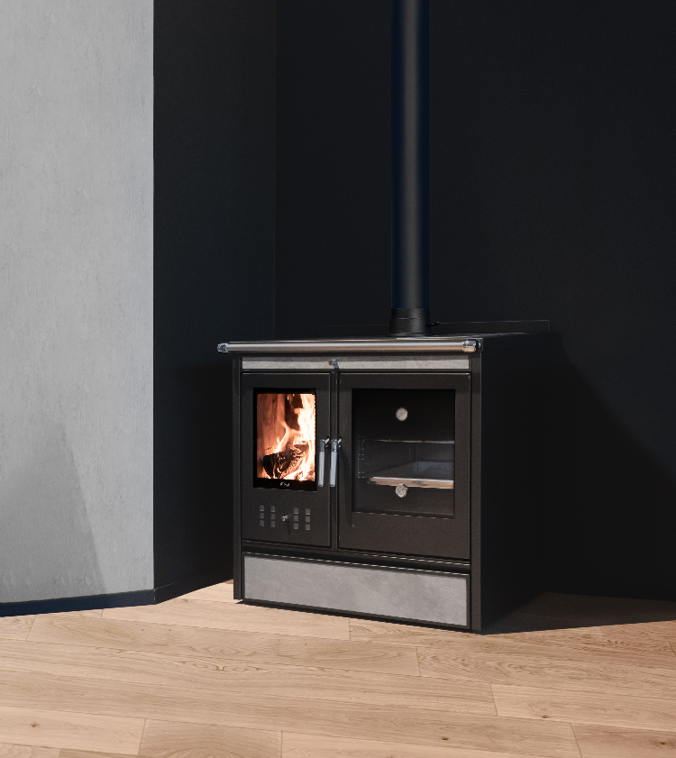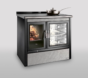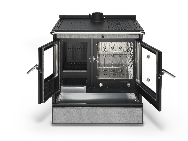 Satin-finish stainless steel handles and handrail, black-painted top frame