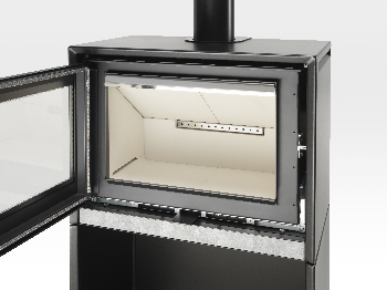 The other practical feature of this Klover wood-burning stove is its wood storage space below the firebox. This means you can keep a supply of logs close at hand, making it easy to feed the fire without having to make numerous trips back and forth for wood.
