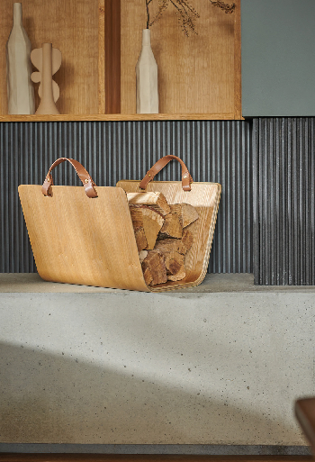 Wood for storing wood! Madera's sleek look and curved shape bring softness, warmth and a soothing, natural feel to your home. Its personality is enhanced by the addition of practical handles, reminiscent of a chic leather goods accessory. This log rack offers a real cocooning touch next to your fireside (12 logs approx.).