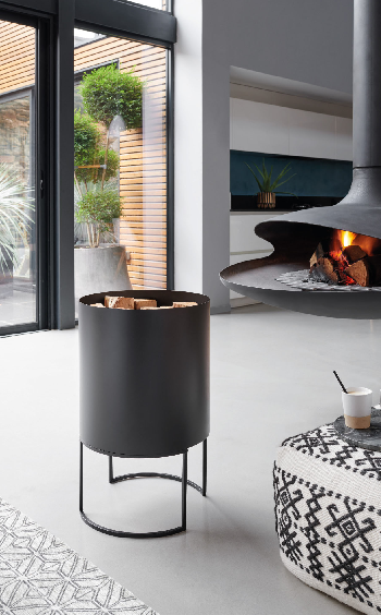 A totemic shape for the Seattle black steel log rack. Elevated on a curved steel base, it makes loading and unloading logs a breeze. Lightness of line, simplicity and balance have inspired this wood storage unit, with its suspended look (approx. 15 logs).