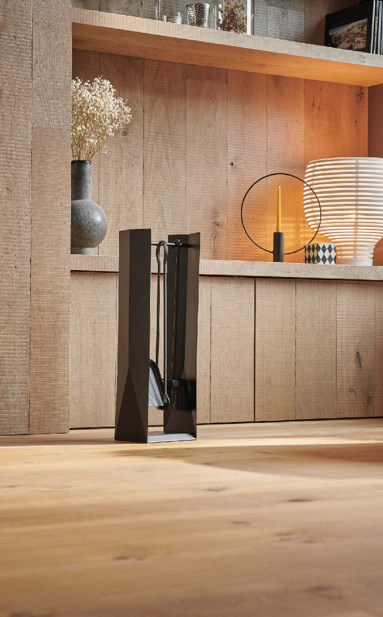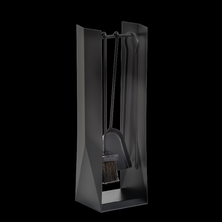 The traditional Japanese art of Origami folding has inspired the geometric shapes of this maintenance set for wood stoves and fireplaces. Contains tongs, pick, shovel and broom.