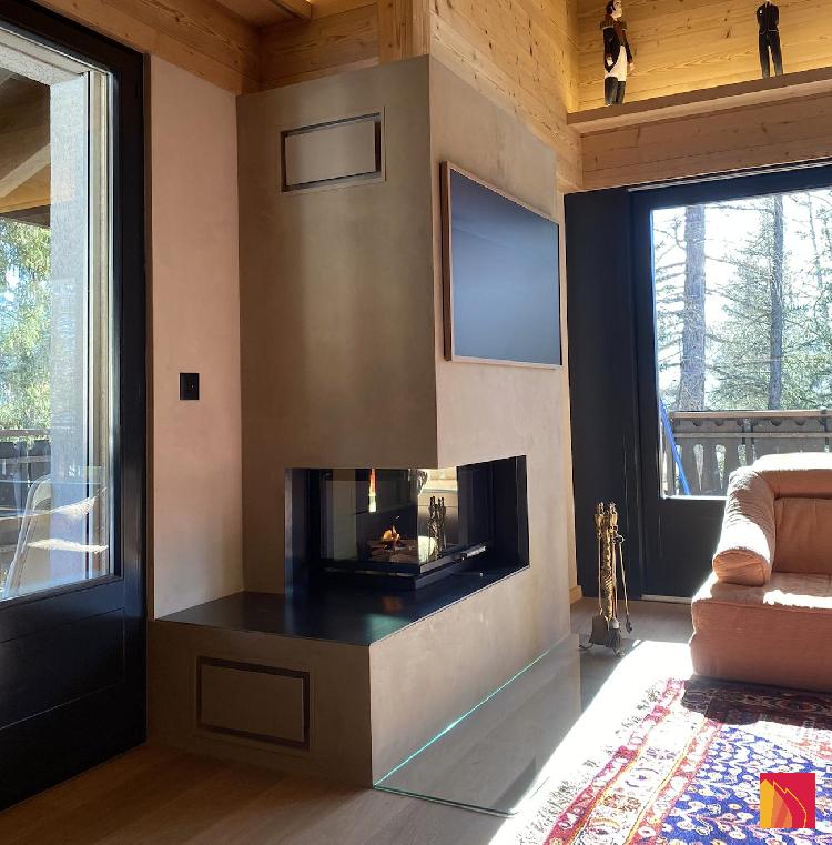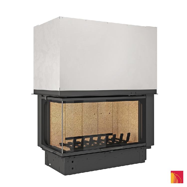 A great classic among closed wood fireplaces, the Atraflam 16/9th 800 fireplace allows you to enjoy the pleasure of the flame both in front of its long front glass and through its side glass. Its 16/9th format offers a panoramic view of the fire. Its retractable door system is easy to use. The two windows, front and side, open to 45° for easy cleaning. The side window can be opened on the right or on the left depending on the technical feasibility.