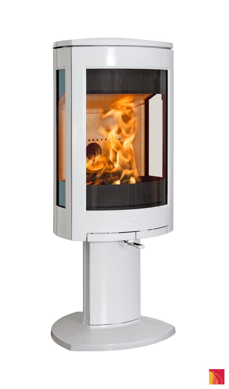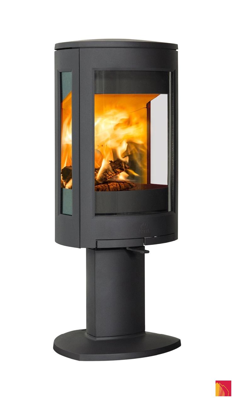The Jøtul F 373 Advance wood-burning stove is distinguished by its modern design with its pedestal base.