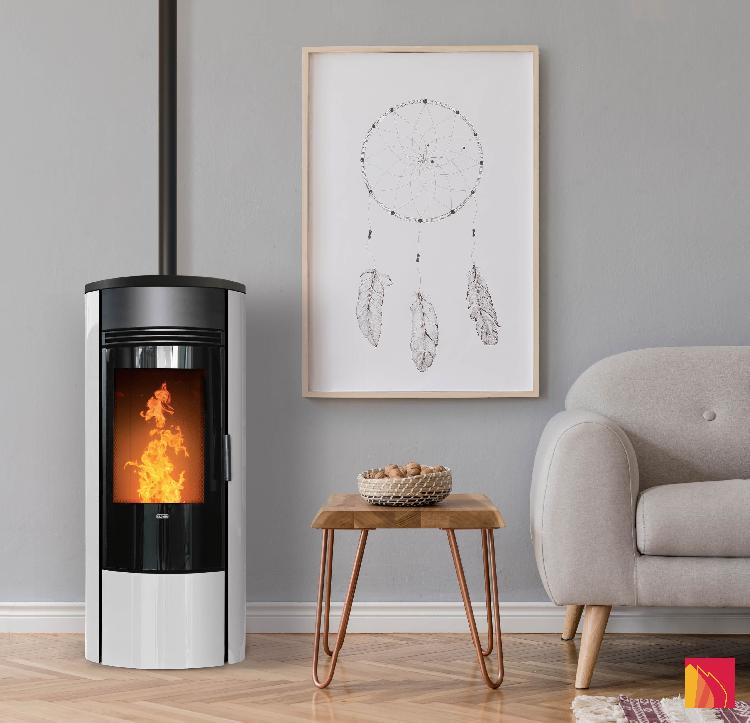 Its perfect lines, curved double-glazed door and innovative technological equipment make this heater a modern stove suitable for all interiors but also for large rooms.