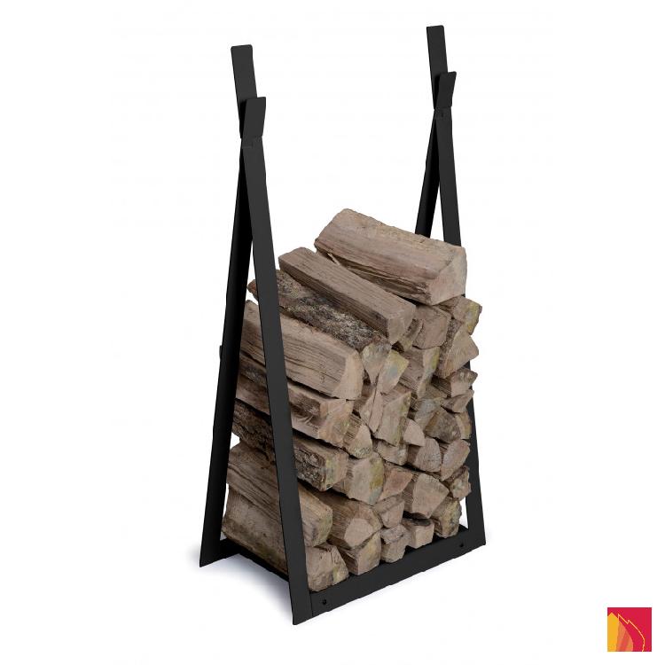 Teepee-shaped log holder with an original and graphic design.
