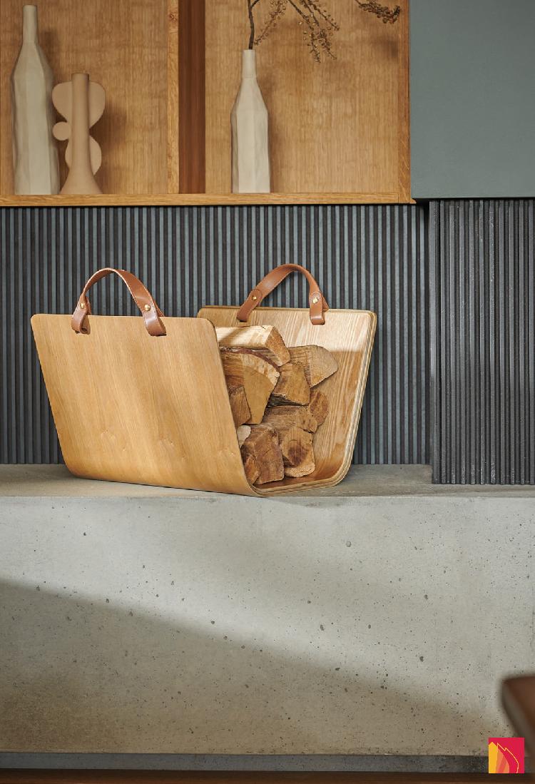 Wood for storing wood! Madera\'s sleek look and curved shape bring softness, warmth and a soothing, natural feel to your home. Its personality is enhanced by the addition of practical handles, reminiscent of a chic leather goods accessory. This log rack offers a real cocooning touch next to your fireside (12 logs approx.).