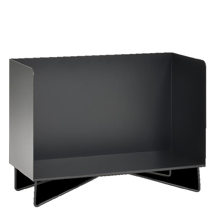 Mediano is a steel log-storage unit with a simple, horizontal shape, providing a very natural, traditional arrangement for your wood supply. Mediano looks like a log-storage unit, raised on wire legs to give it a light touch despite its large capacity (approx. 45 logs).