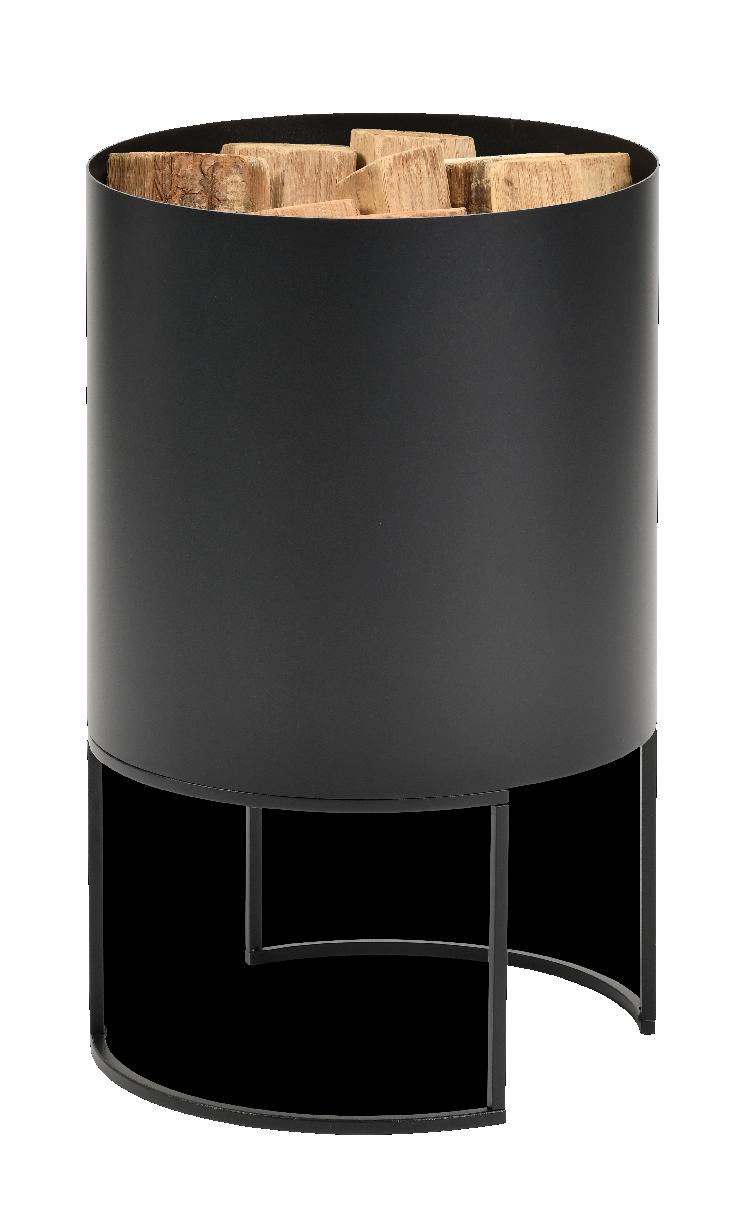 A totemic shape for the Seattle black steel log rack. Elevated on a curved steel base, it makes loading and unloading logs a breeze. Lightness of line, simplicity and balance have inspired this wood storage unit, with its suspended look (approx. 15 logs).