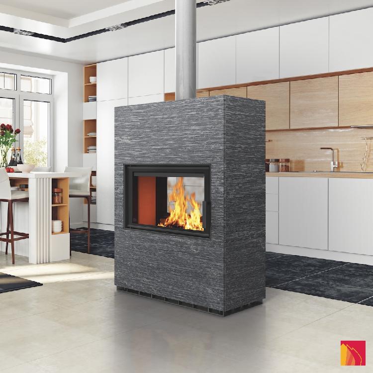 Its doors on both sides make the Lamu stove an ideal space divider. Its large horizontal doors invite you to be mesmerised by the fire and its high heating power ensures a pleasant atmosphere.