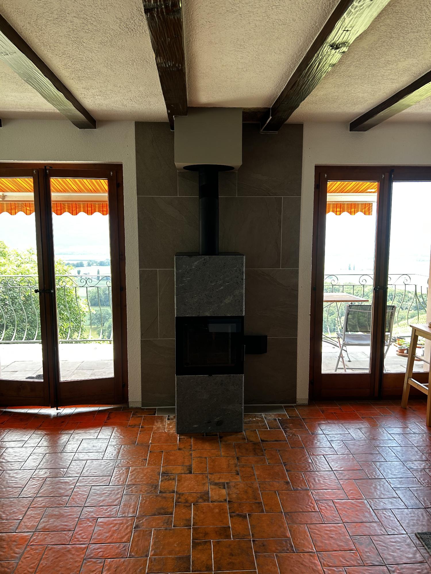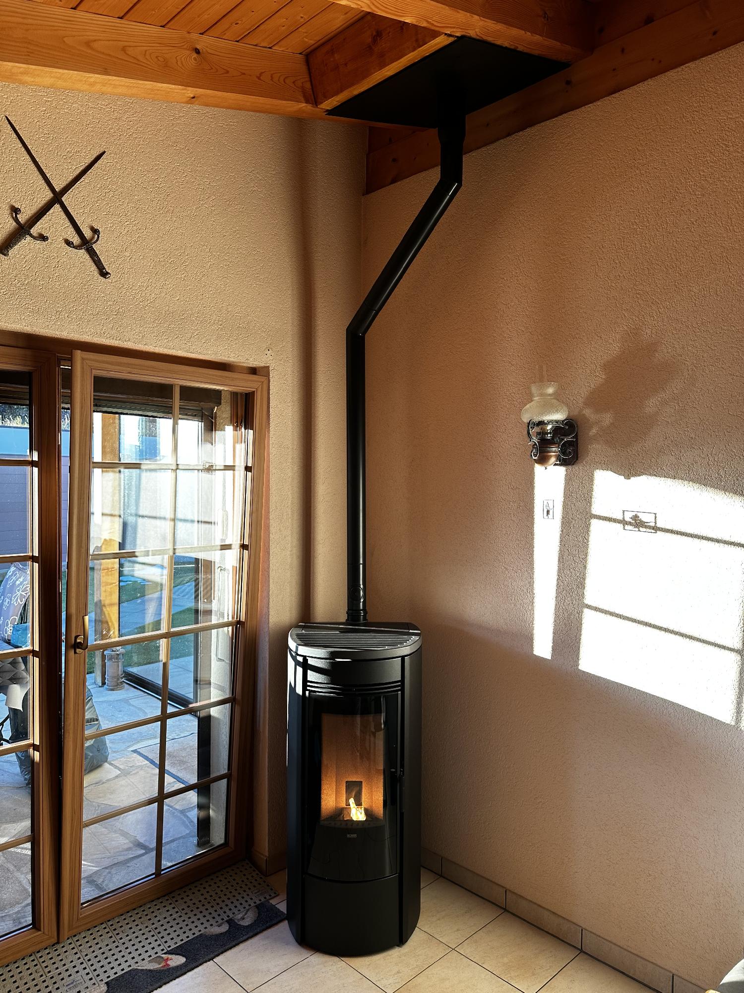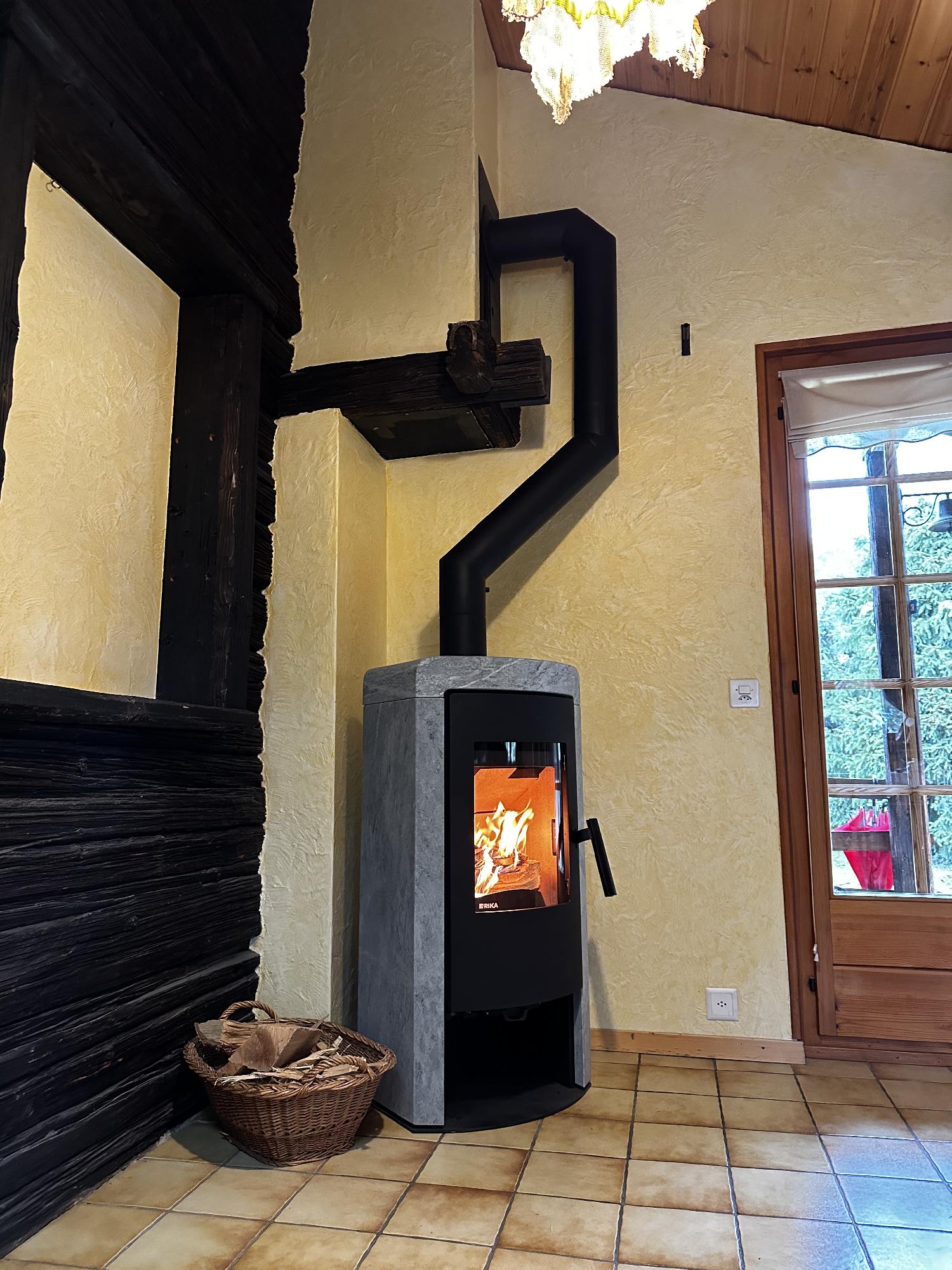 Nous souhaitions au départ une pierre ollaire... grâce à vos conseils, nous avons choisi ce produit qui nous satisfait totalement. Nous aimons l'apparence, la facilité d'utilisation, la polyvalence apportée par le pellet et le bois, la possibilité de le programmer, d'utiliser les ventilateurs ou pas... L'entretien est également relativement aisé. Seule inconnue, la fiabilité dans le temps, mais pour l'instant, nous ne pourrions pas espérer mieux.