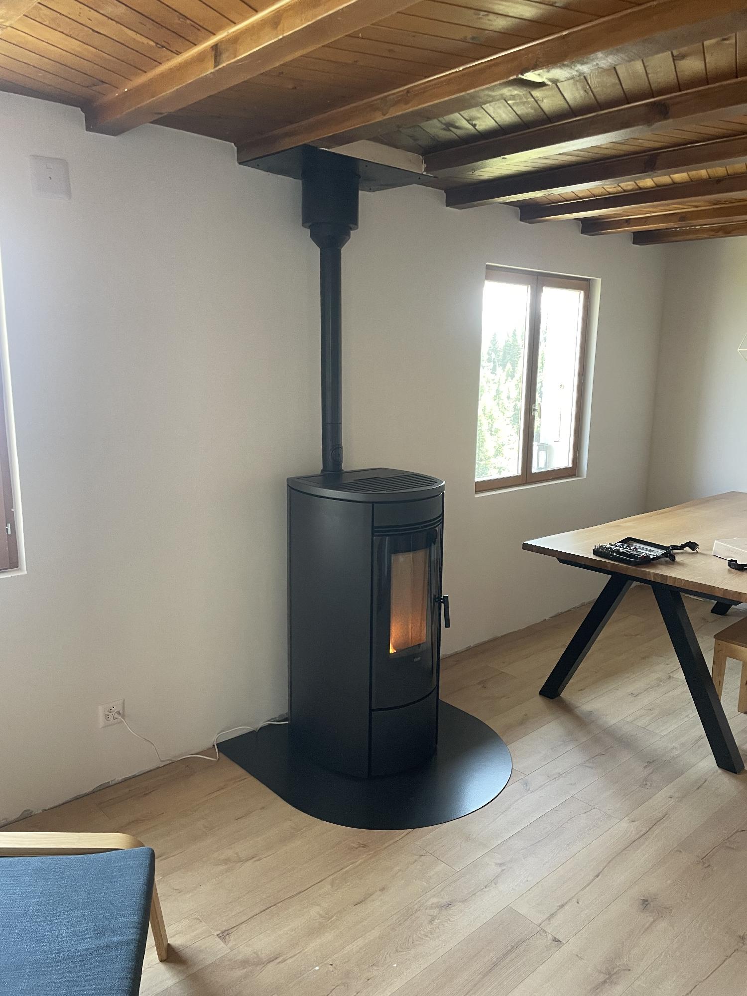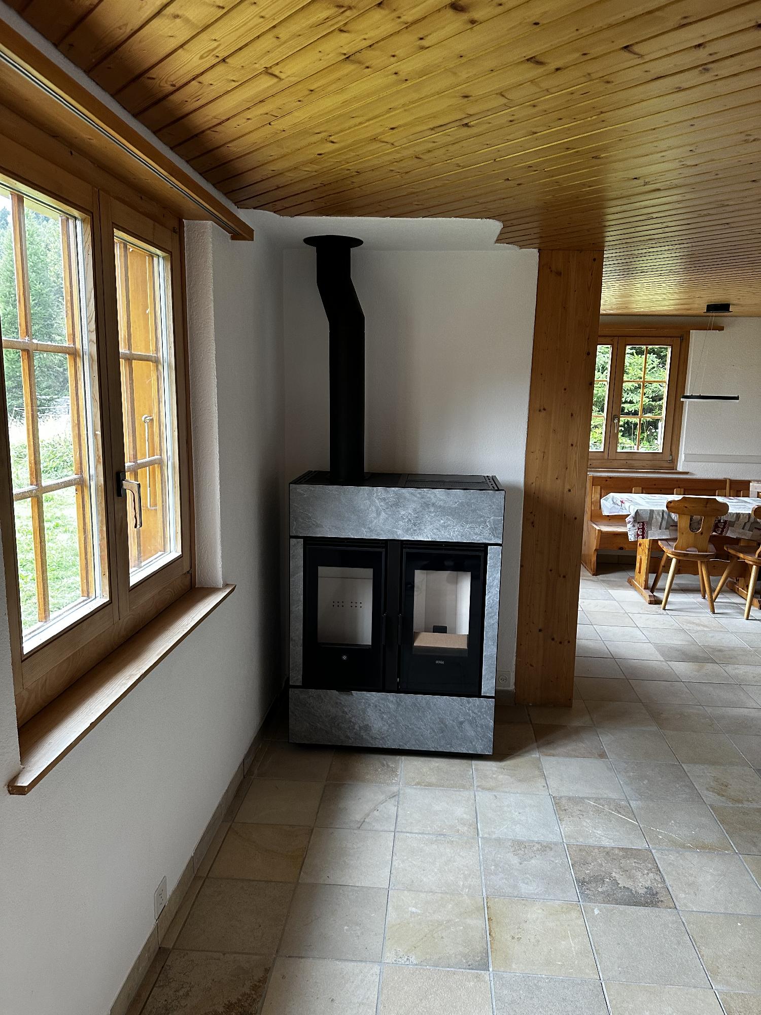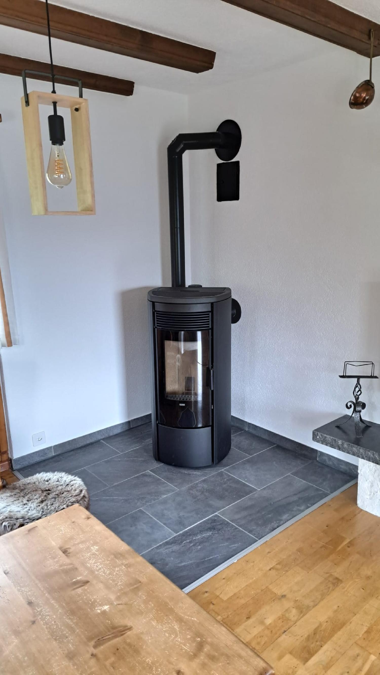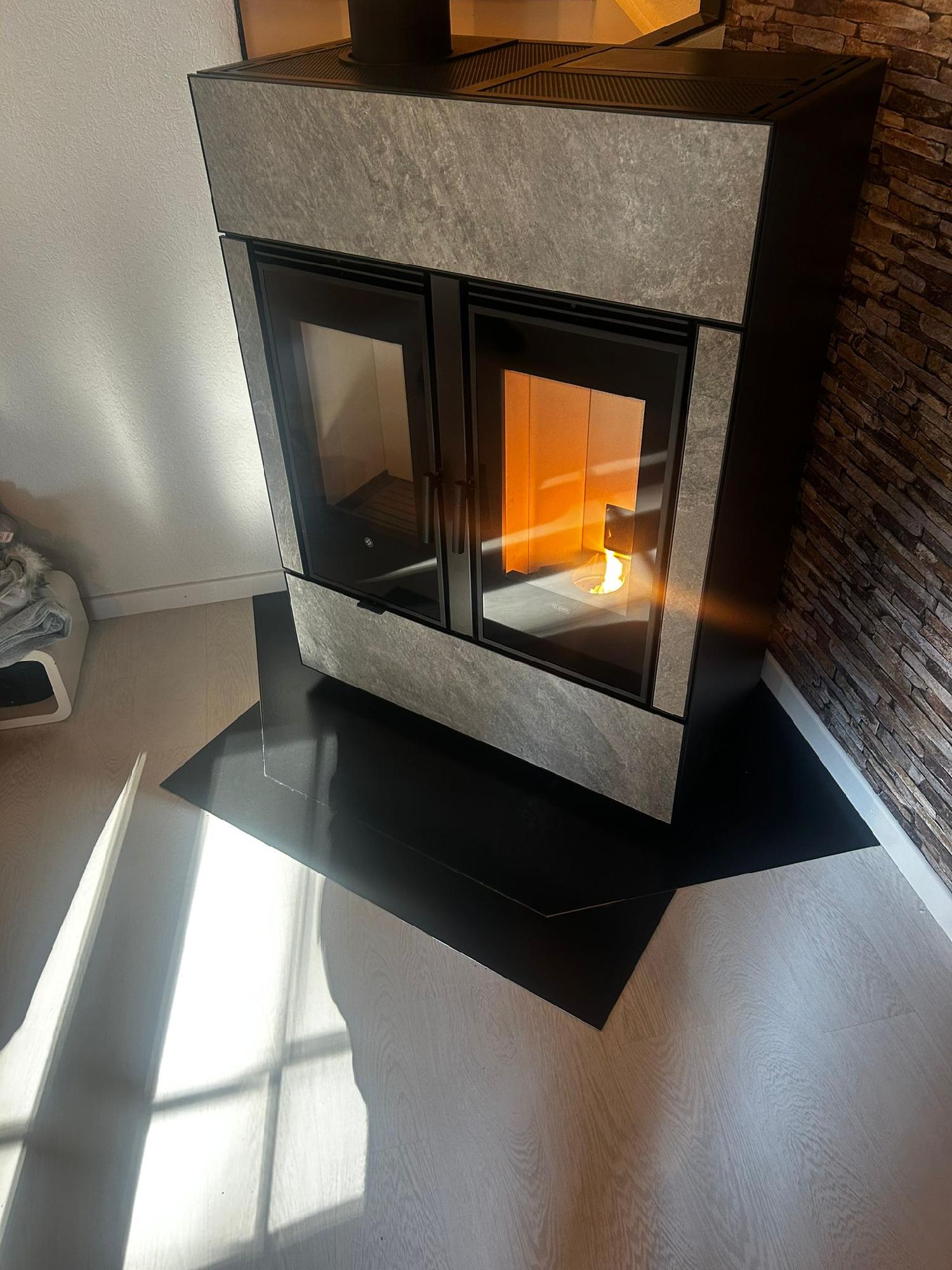 Nous souhaitions au départ une pierre ollaire... grâce à vos conseils, nous avons choisi ce produit qui nous satisfait totalement. Nous aimons l'apparence, la facilité d'utilisation, la polyvalence apportée par le pellet et le bois, la possibilité de le programmer, d'utiliser les ventilateurs ou pas... L'entretien est également relativement aisé. Seule inconnue, la fiabilité dans le temps, mais pour l'instant, nous ne pourrions pas espérer mieux.