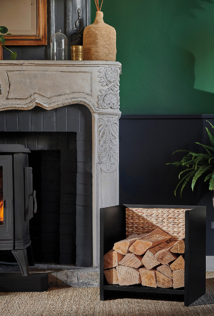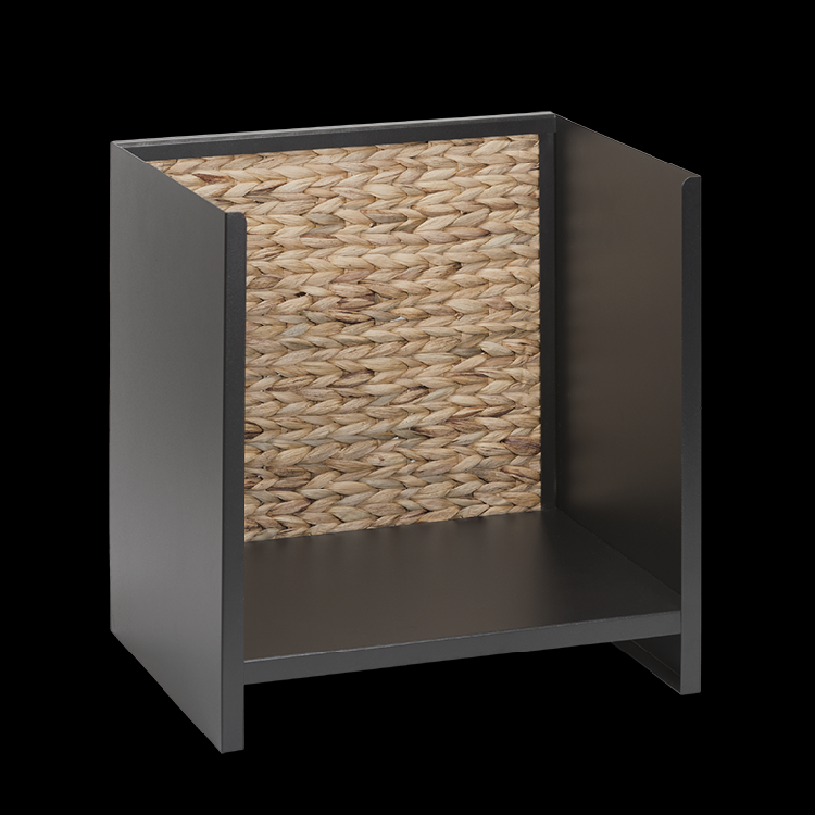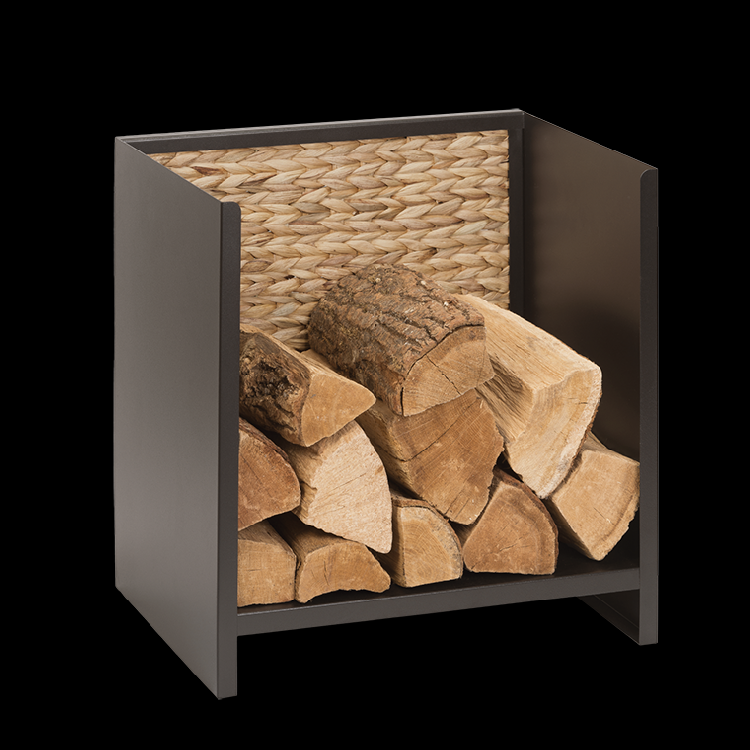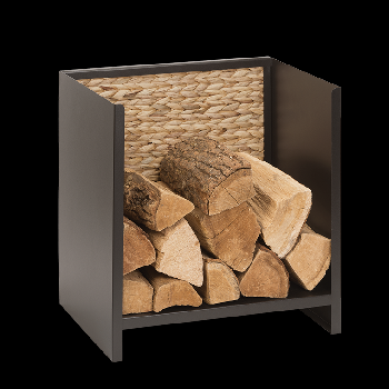 Het Hanoi houtopslagmeubel in zwart staal brengt een vleugje exotisme in huis. De gevlochten waterhyacint basis brengt een vleugje natuur dicht bij je kachel of open haard. Een geslaagde combinatie van stevigheid en natuurlijkheid. Deze houtblokkenhouder kan tot 20 houtblokken bevatten. Hij kan zonder risico tegen de muur geleund worden dankzij de beschermende basis en is voorzien van lopers om de vloer te beschermen.