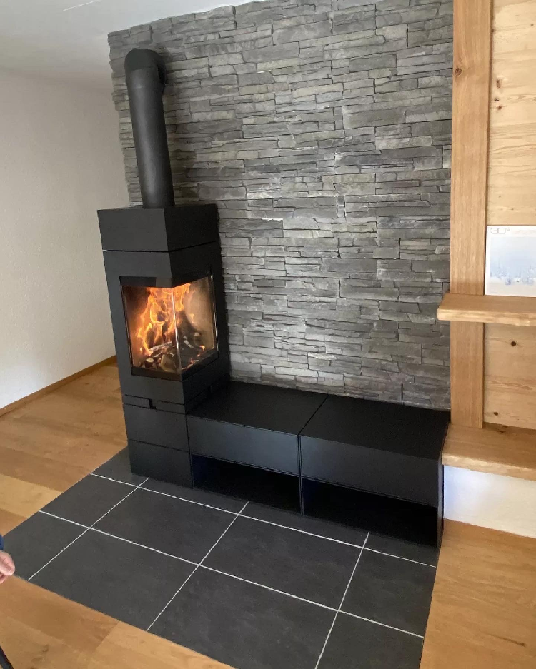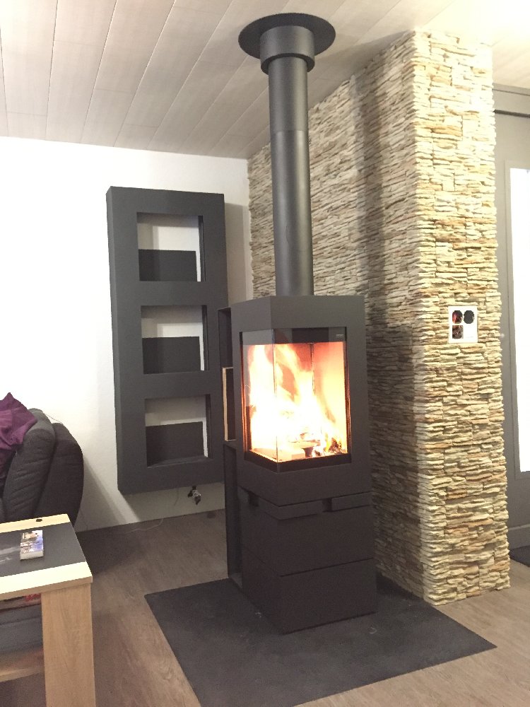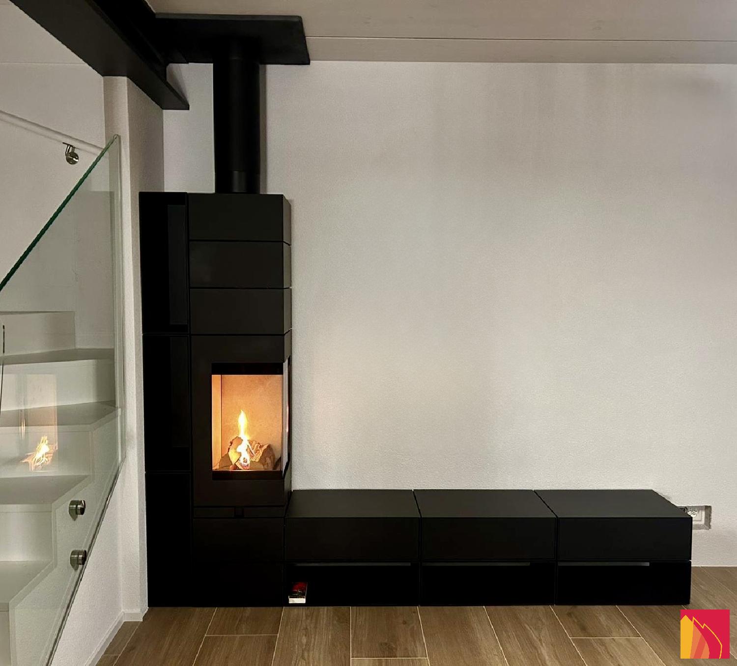 Een echte revolutie in de wereld van de houtkachels, de Element collectie van het Duitse bedrijf Skantherm stelt u in staat om op maat gemaakte werelden te creëren, om de ruimte te heroverwegen. Modulaire elementen die zich aanpassen rond en met de houtkachel, modules die ons terugbrengen naar de tijd van onze jeugdbouwspelletjes. Deze Element 400 Haakse houtkachel is opgebouwd rond een grote dubbelzijdige glazen vuurkist, die als optie kan worden gezwenkt. Een gevouwen glasplaat om niets van het vlammenspel te verliezen. Naast het uitstekende ontwerp is Element even krachtig als speels. De stapelbare behuizing bevat zelfs een Thermostone warmteaccumulator van 230 kg.