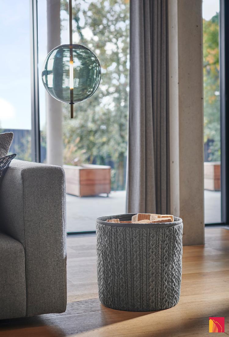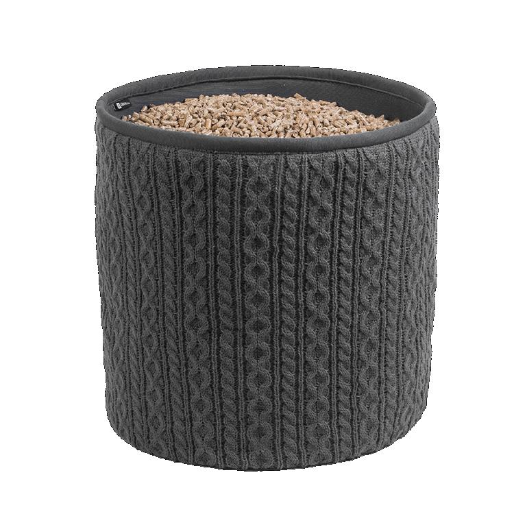 Een decoratieve must-have: de geweven wollen textuur geeft een cocooning gevoel. De Ottawa pellet-/houtkorf is geïnspireerd op deze Scandinavische sfeer met zijn gebreide voering. 25 kg of ca. 12 houtblokken.