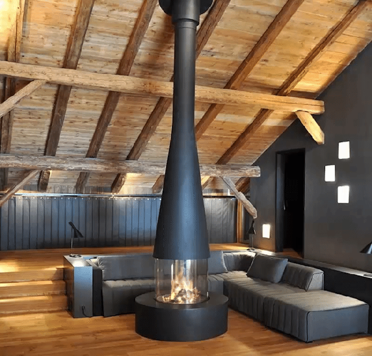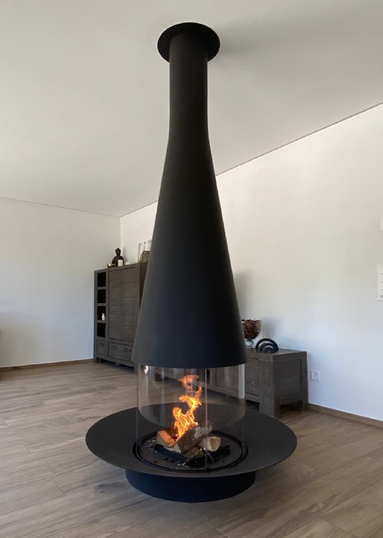 Muito para além do seu papel inicial como aparelho de aquecimento, a lareira central de vidro Filiofocus é um elemento decorativo inegável. Particularmente modular, com as suas muitas opções, esta lareira central, por todo o lado, dos Workshops Focus, tem um pouco de etnia. Composta por um exaustor cónico de diâmetro e altura variáveis na sua versão flexível, um supressor de centelhas composto por quatro vidros pirocerâmicos curvos (duas travessas fixas e duas placas de vidro deslizantes) e uma cama de incêndio, a lareira central de vidro Filiofocus recebeu numerosas distinções pelo seu design original. Outra característica especial desta lareira central debaixo de uma cobertura cónica é que a sua lareira pode ser colocada no chão, incluída directamente no chão ou elevada graças a uma base metálica correspondente. Um verdadeiro ponto de encontro para toda a família ou amigos, é de um convívio inigualável.